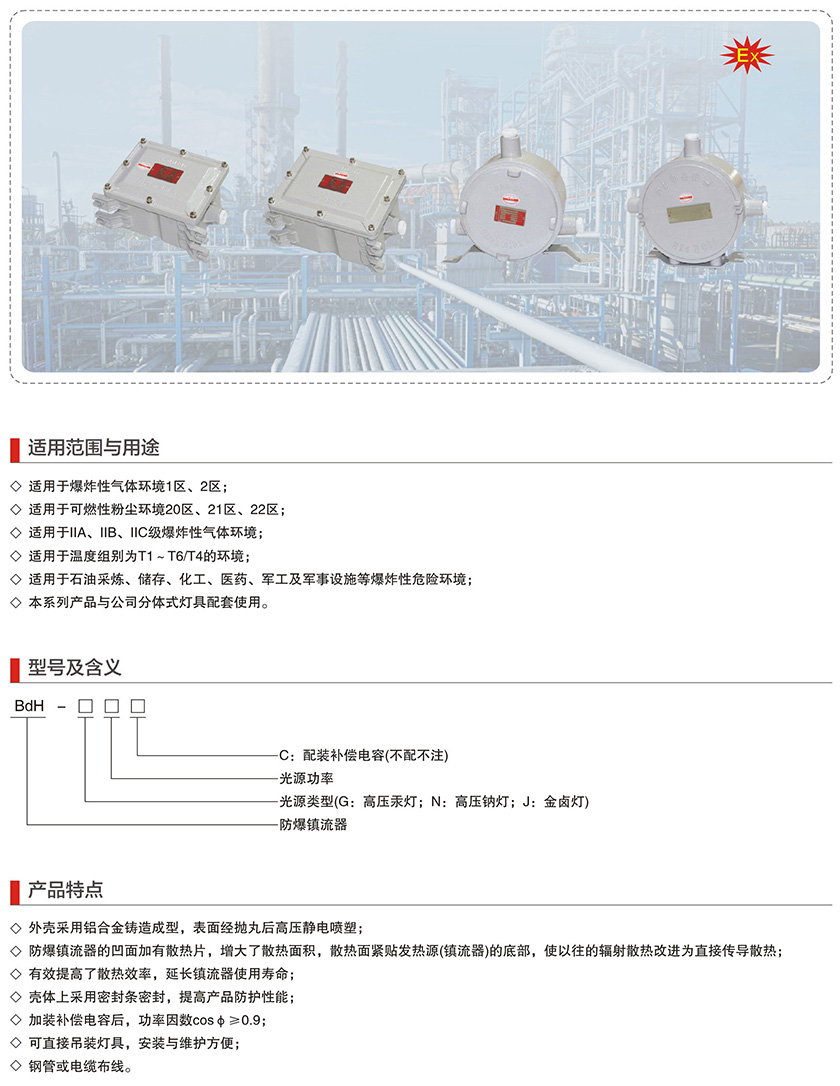 当前位置: 首页 > 产品中心 > 厂用防爆灯具系列 > BdH系列防爆镇流器(IIB、IIC)